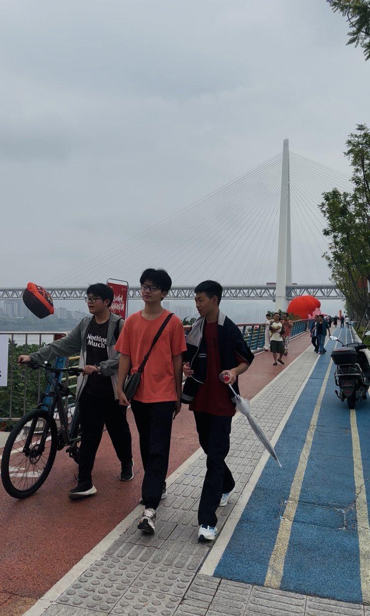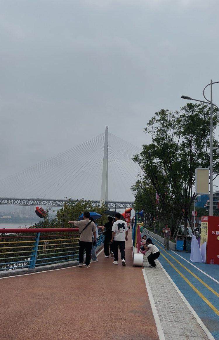 今天上午,在大渡口滨江路彩虹步道,不少市民、游客沿着江边漫步,欣赏白居寺长江大桥的宏伟身姿,眺望奔腾的长江水,感受江风拂面的惬意。