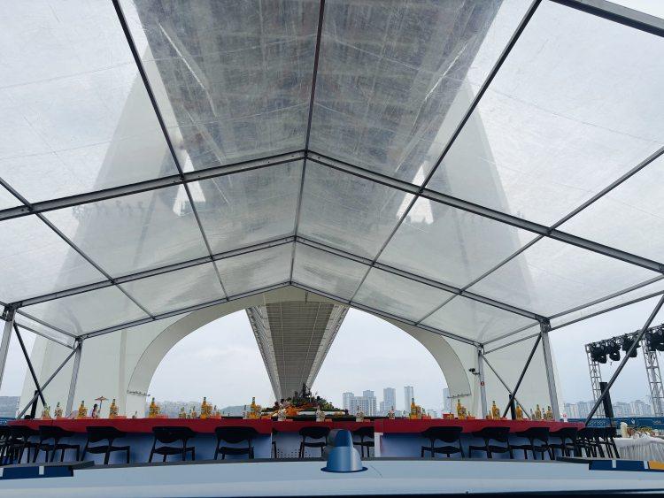 •夜晚(19:00后):桥体灯光亮起,蓝紫色光影倒映江面,夜景如“星际战舰”般震撼。